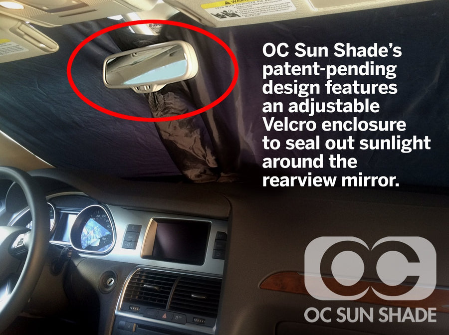 When the weather gets hot, you want an automotive sunshade for your car – ASAP. The OC Sun Shade was designed to give you near custom windshield coverage and ship fast! The patented pending Velcro® design gives you coverage around your rearview mirror and rain sensor areas where traditional sun shades leave big gaps. Keep your vehicle cooler and protect your interior from great UV. Plus, store your OC Sun Shade easily in your door pocket or between the seats. No need for a giant accordion or roll-up style sun shade that takes up so much room in your car! The OC Sun Shade folds up small and easily. 3-year limited replacement warranty.*